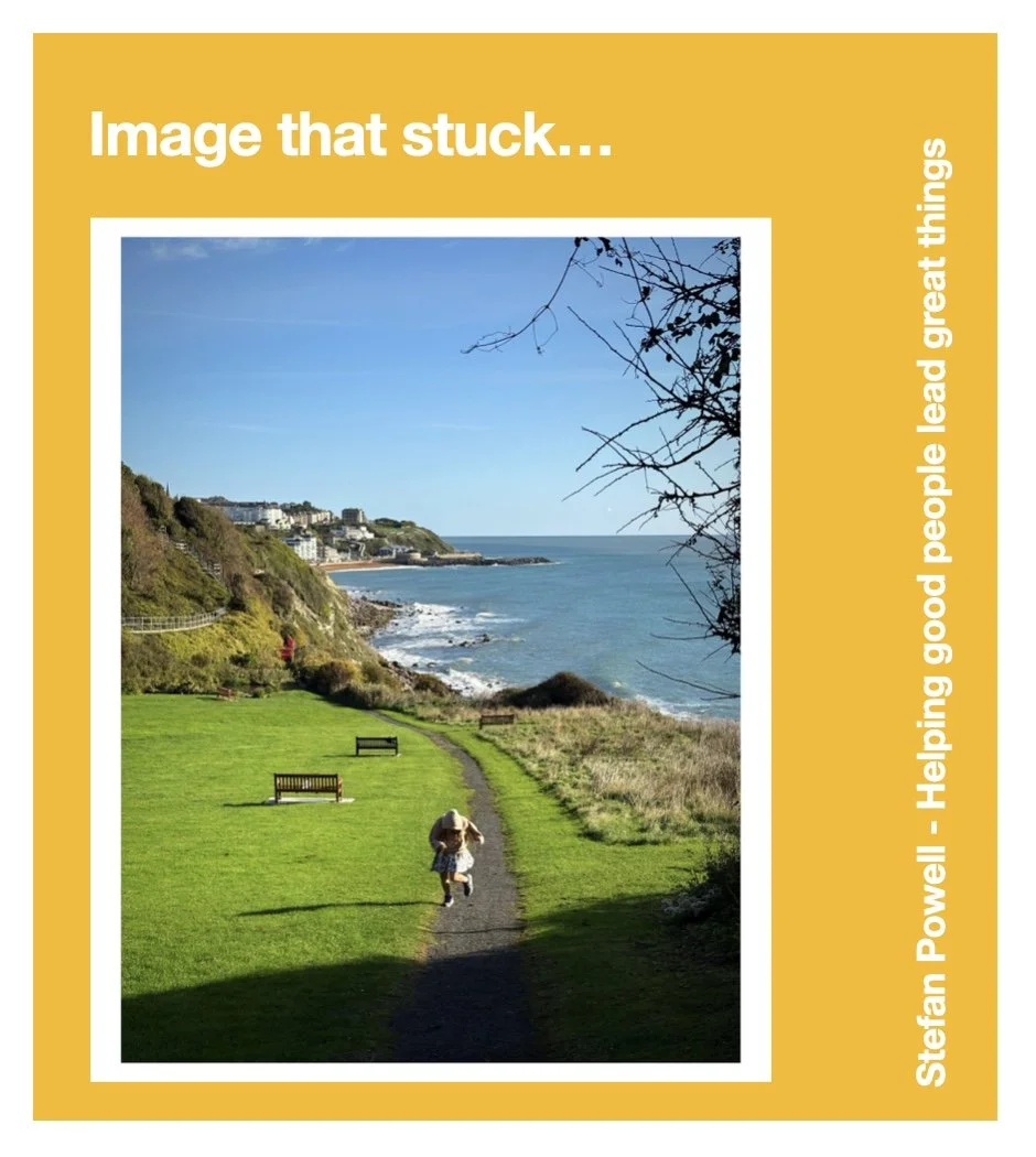 A column breaking the view to the sea; which prompted a photo on Freshwater bay which reminded me of boardrooms, town halls, and strategy days. Moments where what’s immediately in front of you - a problem, a person, a pressure - obscures the bigger picture. A visual metaphor for the role of coaching in helping those i coach see round, through over the obstacle; by changing perspective and where you ‘stand’.